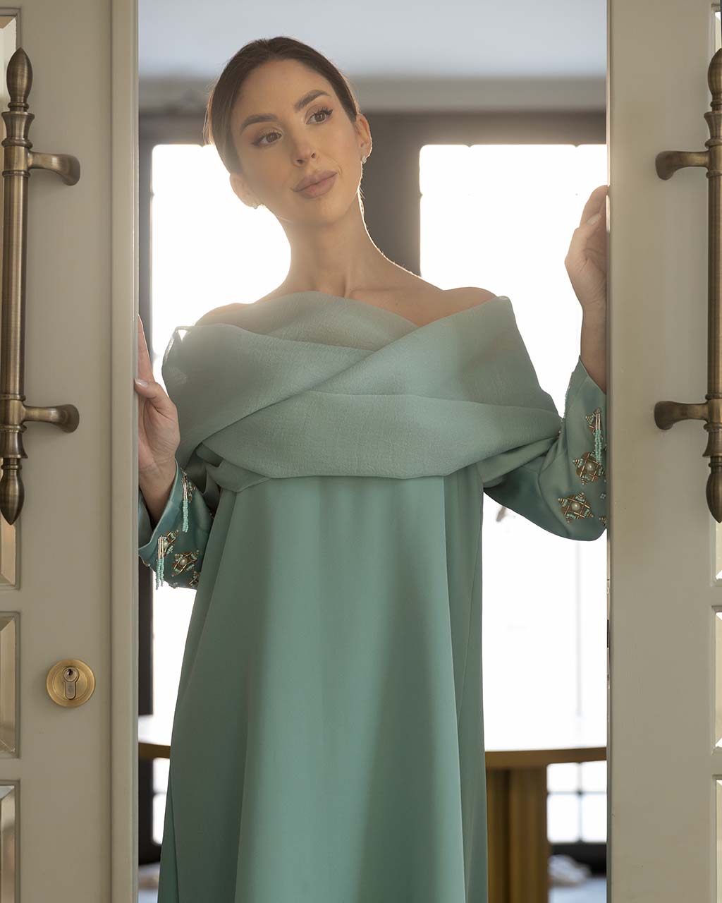 mint green off-shoulders dress