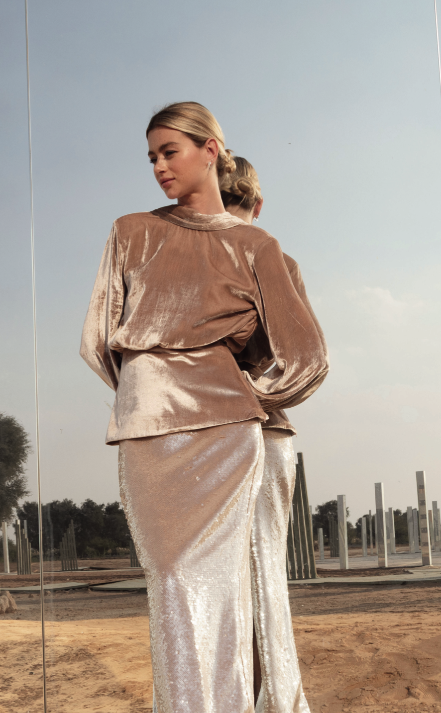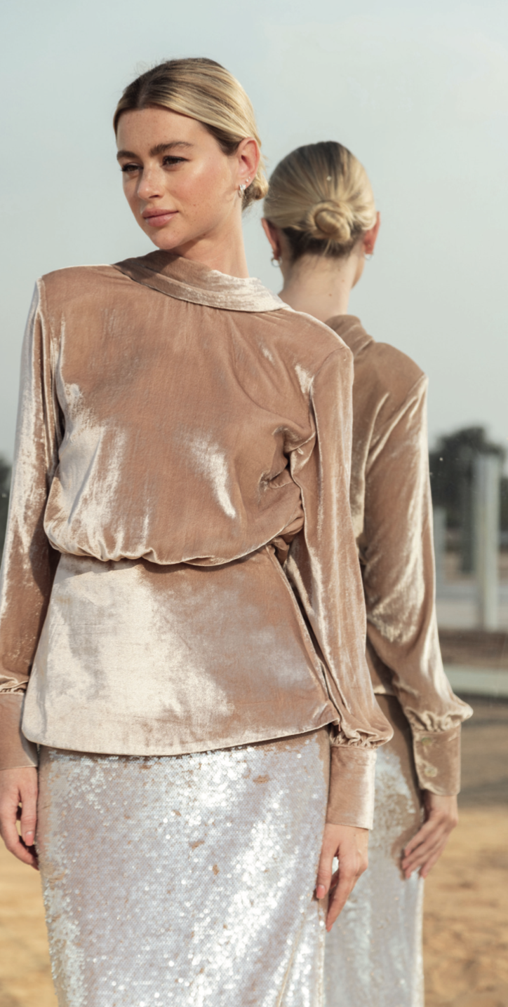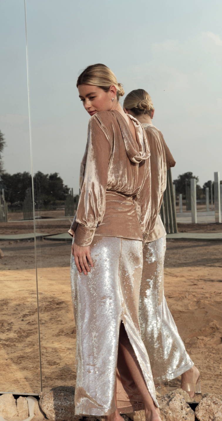 A soft shimmer, where rich texture meets quiet luxury.